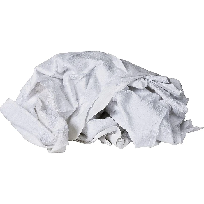 Store this box of white rags within easy reach of grimy hands. Its filled with heavy-duty wipers that absorb spills and collect dirt particles. These Monarch Brands terry cloth wipers hold up to frequent washing and drying.