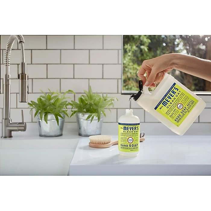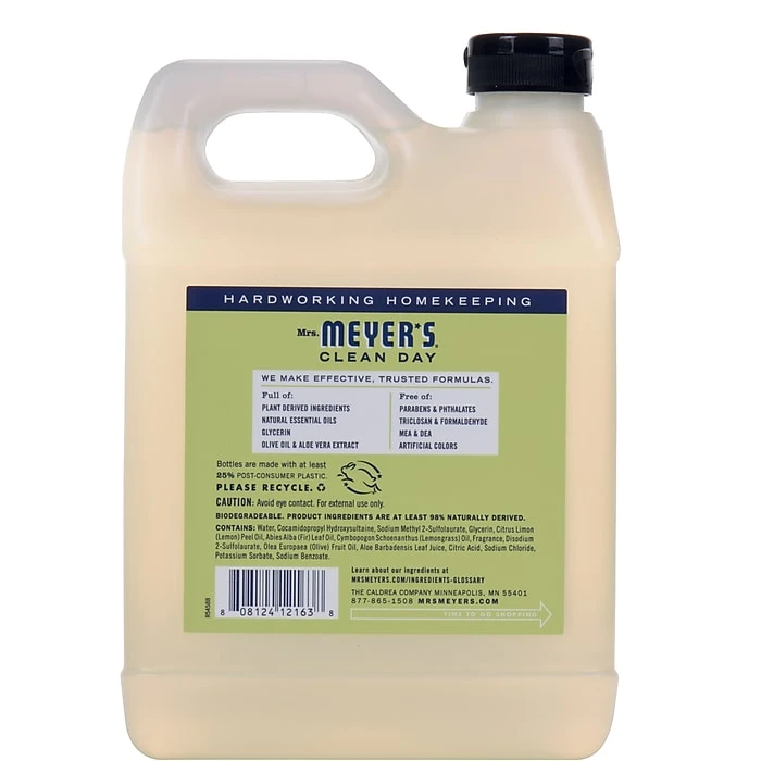 Mrs. Meyer’s Clean Day Hand Soap contains a special recipe of aloe vera gel, olive oil and a unique blend of essential oils and other naturally derived ingredients.