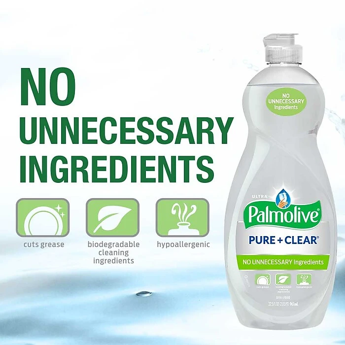 If clear and simple is how you like things, then Ultra Palmolive® pure + clear® is the cleaner for you. Hypoallergenic, clear as can be with no heavy fragrances and non-irritating dyes, it’s the simple cleaner that’s tough on grease and gentle on your