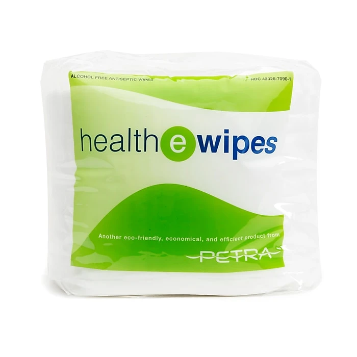 Petra HealthEWipes are antiseptic wipes that contain benzalkonium chloride as an active ingredient, which is effective in destroying (harmful) bacteria to provide antiseptic cleaning. These wipes are safe to use on skin.
