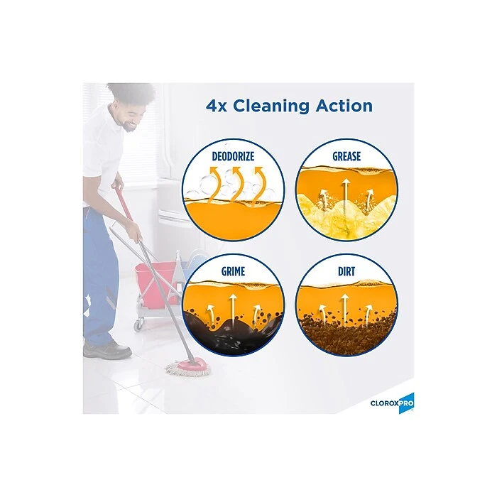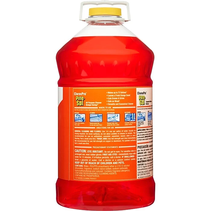 CloroxProâ„¢ Pine-Sol® All Purpose Cleaner gives you 4X cleaning action cutting through dirt, grime and grease, while deodorizing throughout your home, office or commercial facility and a great, long lasting scent. This concentrated formula cleaner can tackle any challenge; just mix Pine-Sol® with water at different strengths to adjust your cleaning power each time, unlike premixed cleaners. Pine-Sol® All Purpose Cleaner is safe to use on most hard non-porous surfaces including finished hardwood, ceramic tile, linoleum, plastic, and leaves no sticky residue. It’s ideal for use in offices, day care centers, schools, hotels, restaurants and other commercial facilities. With the power of Pine-Sol® on your side, you only have to clean once to get the job done right.
