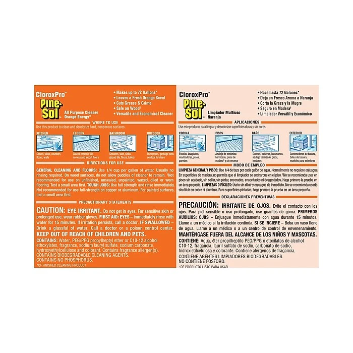 - ALL PURPOSE CLEANER: Pine-Sol ® All Purpose Cleaner cleans and deodorizes floors, industrial kitchens, restroom facilities and more; Packaging may vary