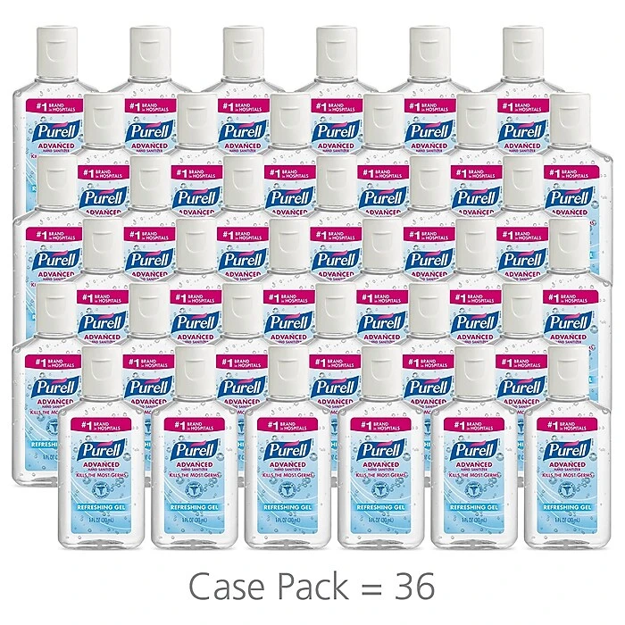 - Bowl Includes: 36 – PURELL Advanced Hand Sanitizer Refreshing Gel for Workplaces – 1 fl oz flip-cap bottles