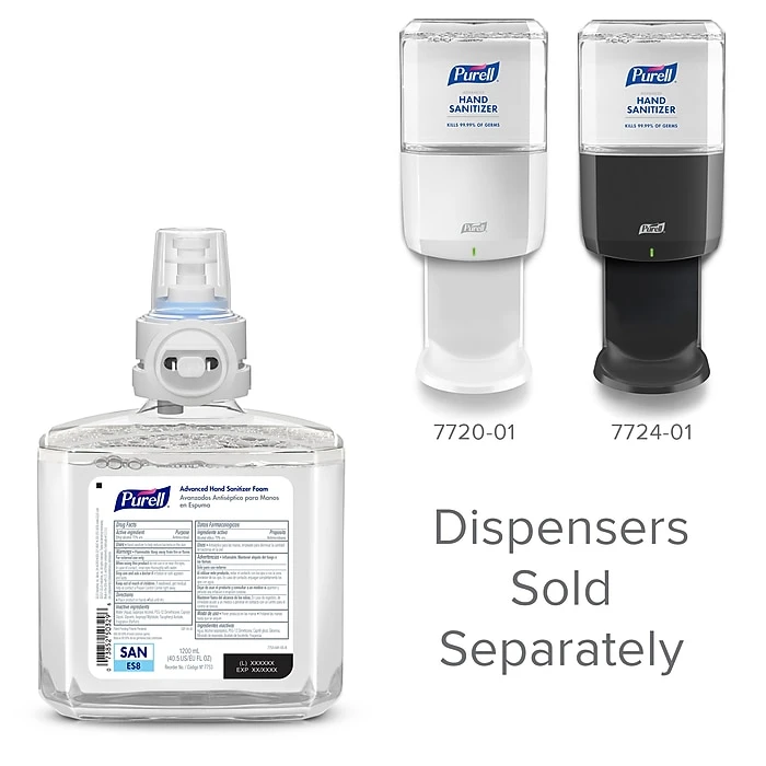 - Case Includes: 2 – PURELL Brand Advanced Hand Sanitizer Foam, 1200 mL Refills for the ES8 Automatic Hand Sanitizer Dispenser; ES8 dispensers (SKUs 7724-01 and 7720-01) are sold separately