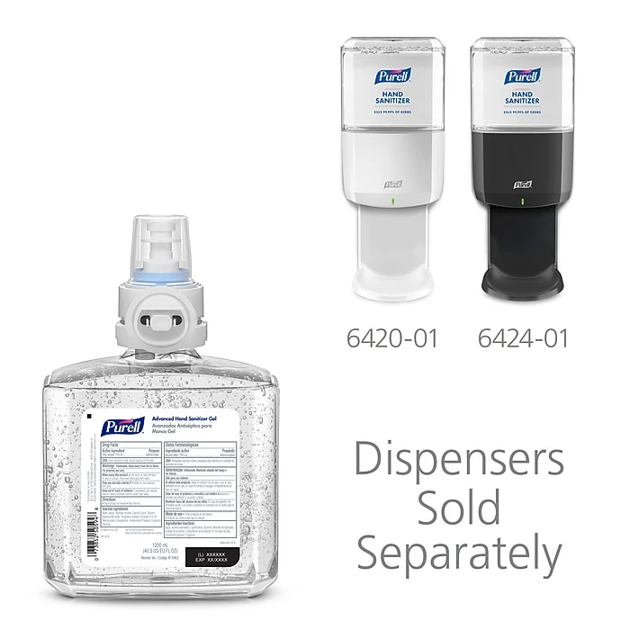 - Case Includes: 2 – PURELL Advanced Hand Sanitizer Gel, 1200 mL Refills for the ES6 Automatic Hand Sanitizer Dispenser. ES6 dispensers (6420-01, 6424-01) are sold separately