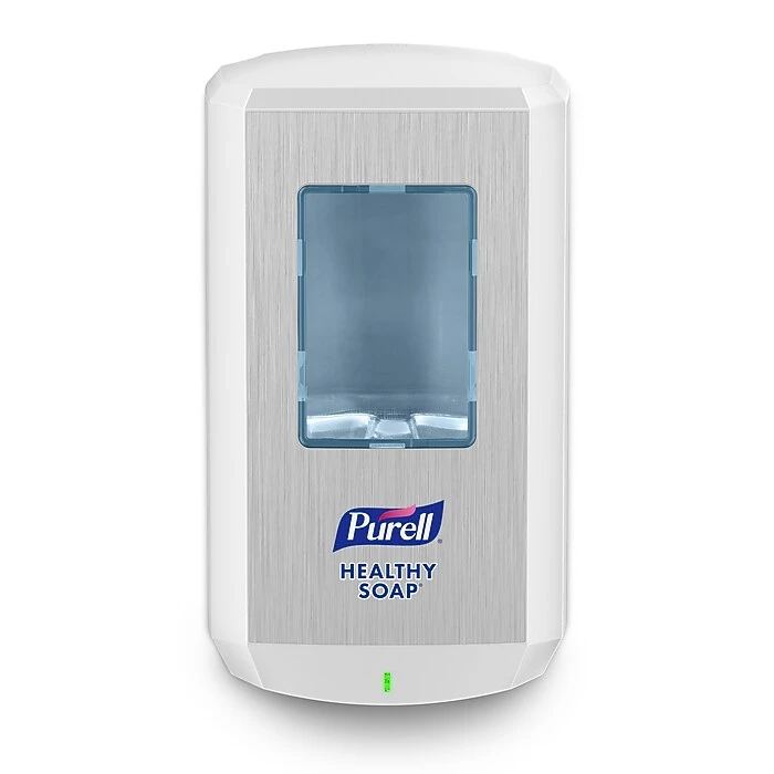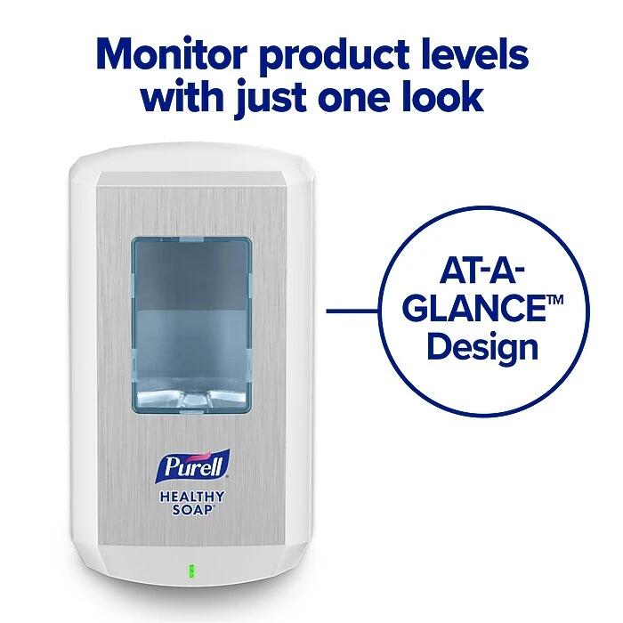 Touch-free dispenser with energy-on-the-refill for PURELL HEALTHY SOAP. Always-ready touch-free soap dispenser with energy-on-the-refill. Each new refill comes with its own energy source – a coin cell battery integrated into the refill. Optional SMARTLINK modules add capability for service alerts, compliance monitoring and other upgrades as technology evolves. Uses PURELL CS8 1200 mL Hand Soap refills.