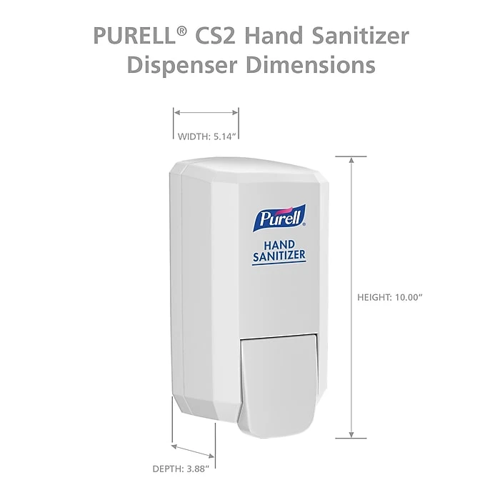 - Case includes: 1 – PURELL® CS2 Push-Style Hand Sanitizer Dispensers, White