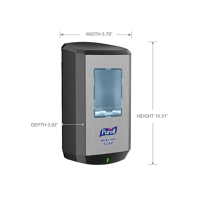 - Case Includes: 1 – PURELL CS6 Touch-Free Hand Soap Dispenser, wall mounting adhesive, and 4 “C” batteries