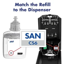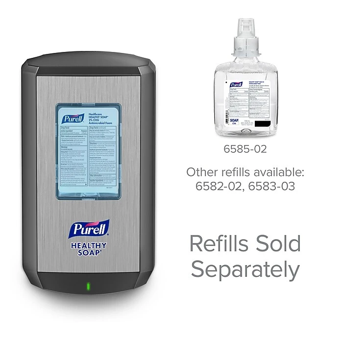 - Works with PURELL CS6 1200 mL HEALTHY SOAP refills (sold separately, SKU 6585-02, 6583-03, 6582-02); large refills are ideal for high-traffic areas