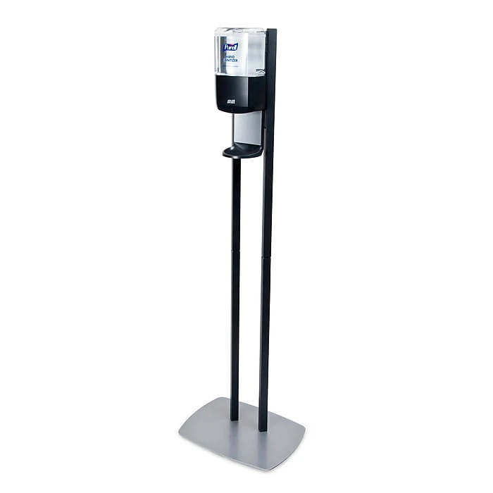 Touch-free ES8 dispenser floor stand for Purell hand sanitizers.