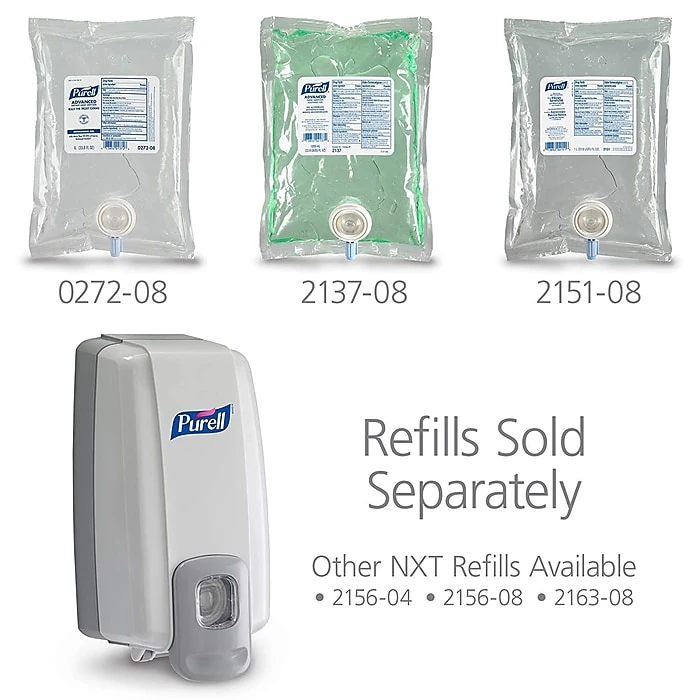- The Purell NXT Dispenser works with Purell Advanced Hand Sanitizer Refills