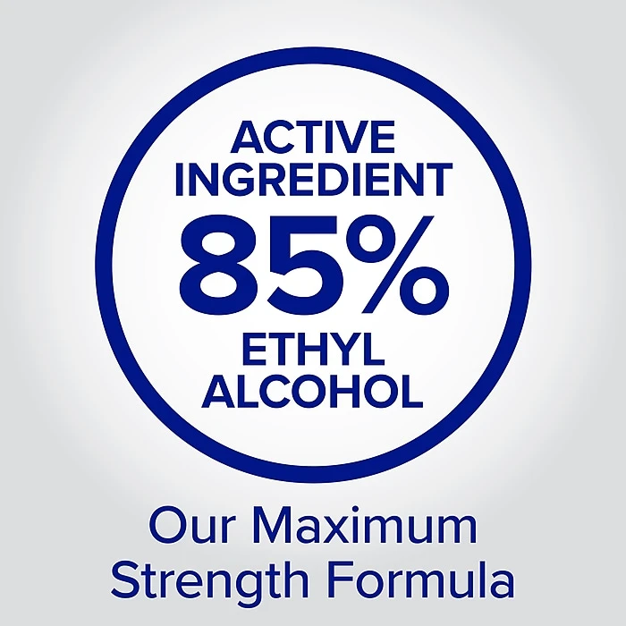 - Our maximum strength formulation with 85 percent ethyl alcohol and moisturizers.
