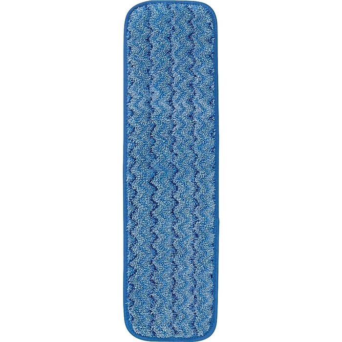 Save water and clean more efficiently using this 18-inch Rubbermaid HYGEN microfiber blue damp mop pad, which cleans 45-percent better than string mops and uses up to 90-percent less water than traditional wet mops. Sturdy construction, including double-finished edges, ensures the pad stands up to numerous launderings without losing its shape or effectiveness. A hook-and-loop backing makes the pad easy to install on mop handles, while zigzag scrubbing strips pack in more microfiber material to help you clean tough spots more easily.