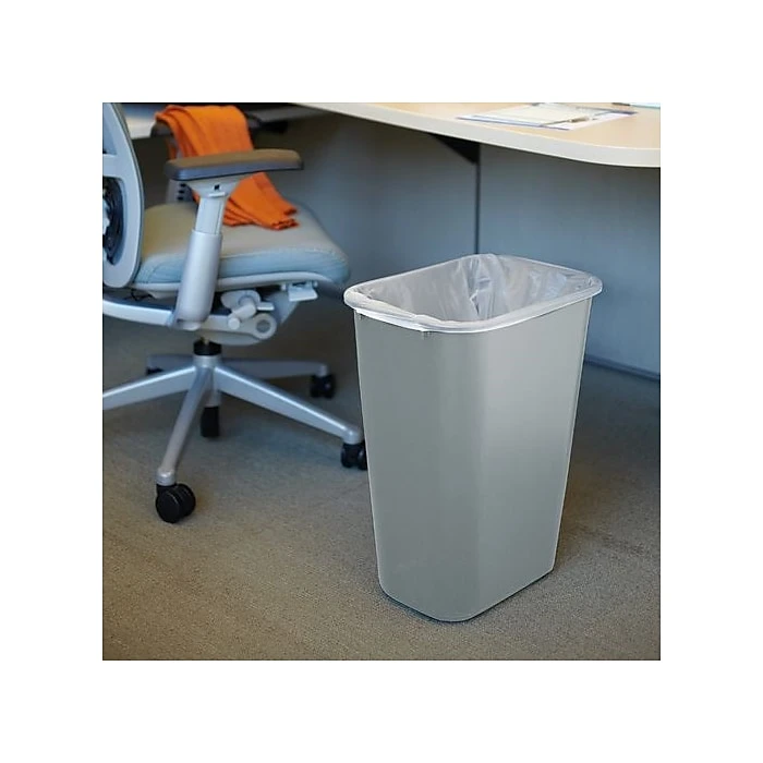 Place this wastebasket under desks, inside cabinets and in corners for convenient garbage disposal. With fully plastic, chip-resistant construction and a sturdy rolled rim, this wastebasket is ideal for busy areas in health centers, hotels, offices, and schools.