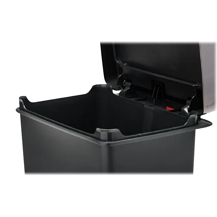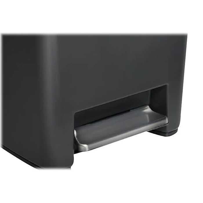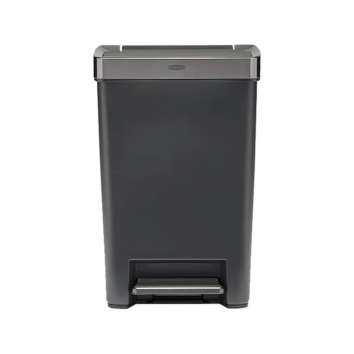 The Rubbermaid Premier Series III Step-on Container introduces a modern and warm aesthetic to your home. The charcoal resin body with charcoal stainless-steel rim and foot pedal complements kitchen appliances and hardware. Fingerprint resistant coating on the stainless-steel ensures a clean, premium look and feel to the container throughout the day. Flared Anti- Slide Base complements kitchen appliances while increasing container stability.