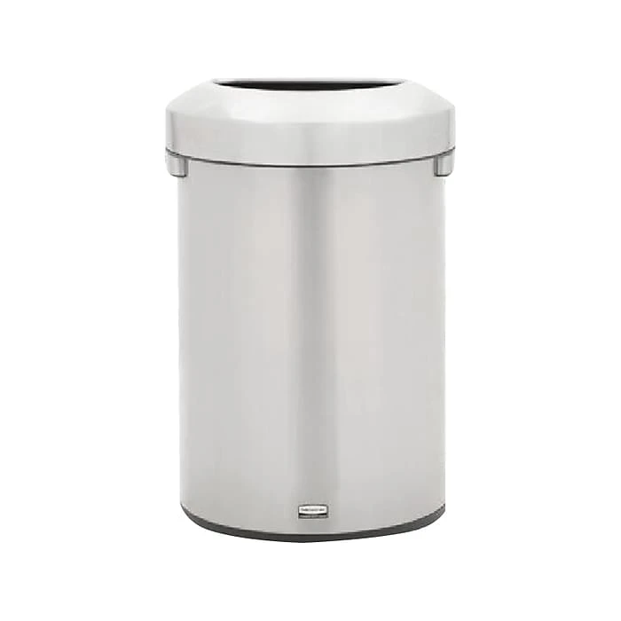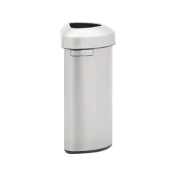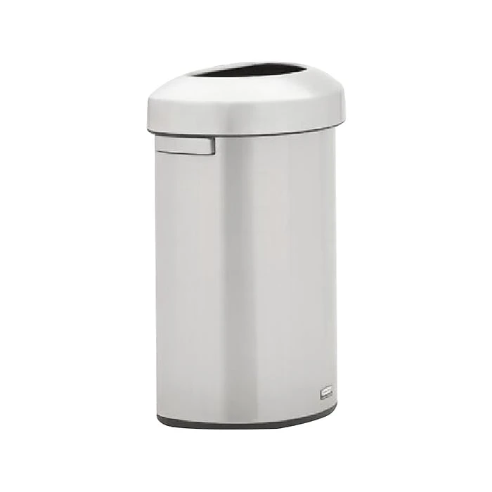This Rubbermaid semiround trash can lets you dispose of waste items efficiently. Features handles for easy lifting and movement.