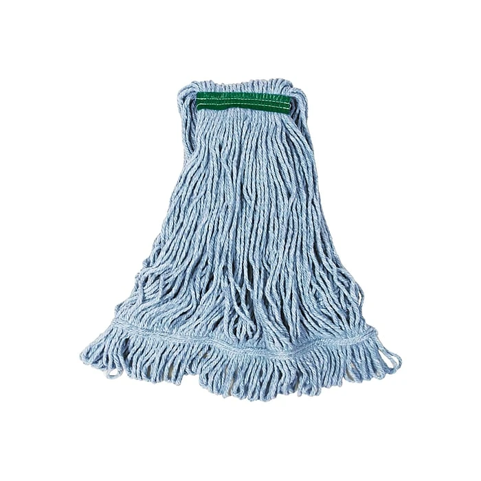 Make short work of mopping with this 1-inch headband mop head. The looped ends and yarn tailband provide broad coverage and easy laundering. This Rubbermaid blend mop is made with four-ply cotton and synthetic yarns for optimal absorbency and excellent release of liquids.