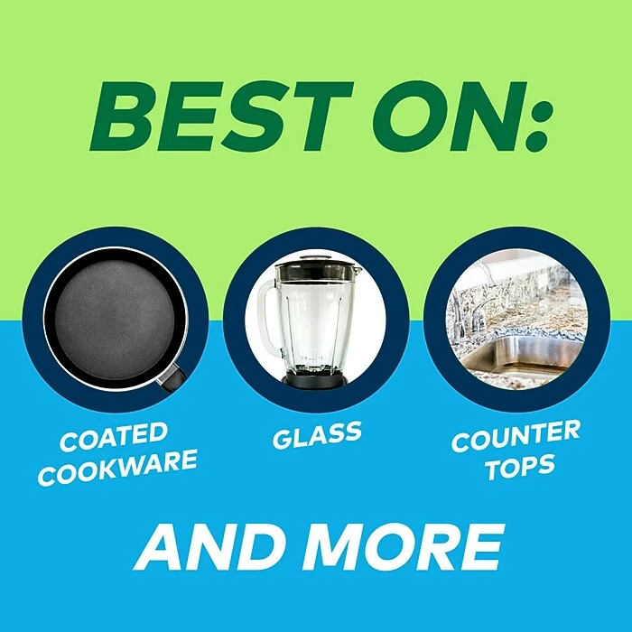 - Safe on non-stick cookware, countertops, showers and tubs