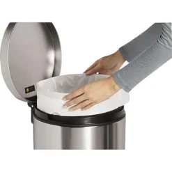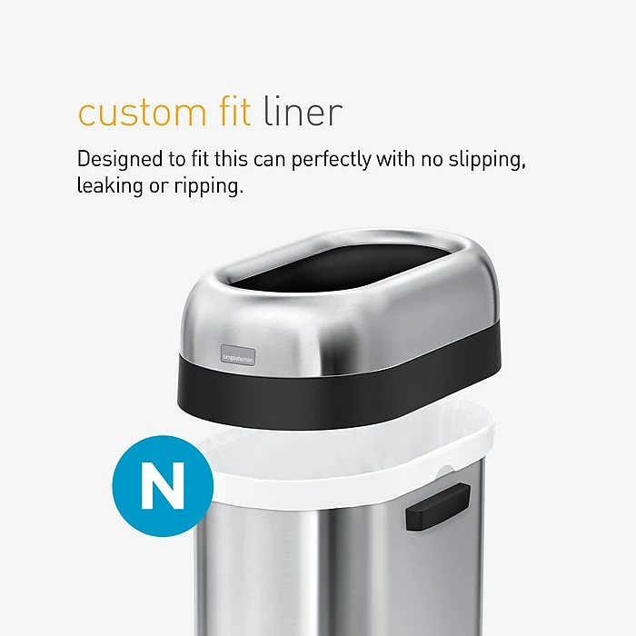 Simplify trash duties with these can liners. Their drawstring handle makes them easy to close and lift, and the extra-thick plastic prevents rips and tears. These code N custom-fit simplehuman garbage bags keep your trash can’s interior completely shielded without displaying a large overhang.