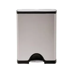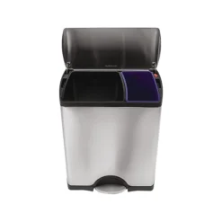 Keep trash contained and sorted in this recycle bin and trash can. The lid stays open when needed, so you can easily clean up after large lunch meetings, and the patented silent lid closure keeps unwanted noise at bay. This fingerprint-resistant simplehuman stainless steel bin has two removable color coded buckets for sorting trash and recyclables with ease.