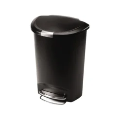 Large capacity makes this can and ideal choice for busy areas around the home. Strong steel pedal is designed to last. Slide lock helps keep trash in and pets out.