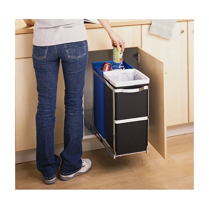 simplehuman 35 litre under counter pull-out recycling trash can, heavy-duty steel frame