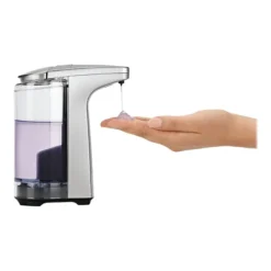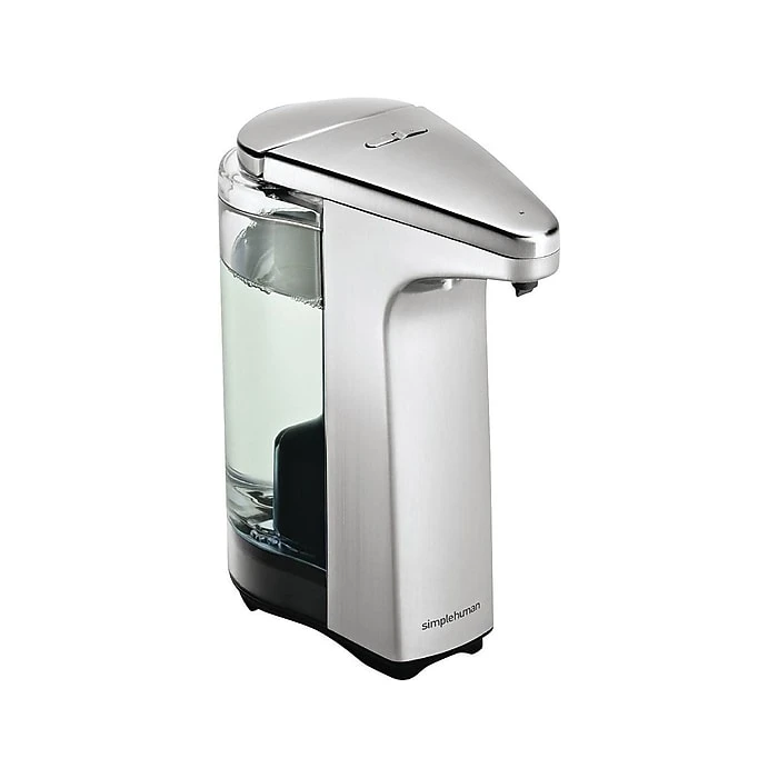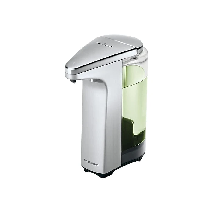 Promote hygiene with this touchless, stainless steel soap or liquid sanitizer dispenser. The dispensing valve shuts rapidly to prevent unwanted dripping when no longer in use, while the pump design ensures a speedy, consistent flow. This simplehuman compact soap or sanitizer dispenser features a sensor, letting you dispense contents without having to touch it, and the stainless steel construction provides strong durability. This simplehuman touch-free sensor pump is the most efficient and easy way to wash your hands – no germs or smudges left behind. Perfect for small sinks or countertops, its high-efficiency pump provides fast and accurate soap/sanitizer dispensing in just 0.2 seconds. The silicone valve prevents messy drips and clogs. A wide opening makes refills fast, easy and mess-free. Use simplehuman soap for optimum pump performance.