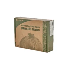 Controlled life-cycle plastic trash bags have similar performance properties of ordinary plastic bags except they are modified to accelerate aging in a process that safely returns the organic carbon, from which the plastic is made, to the natural bio-cycle as a food source for microorganisms.