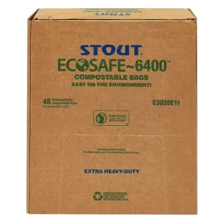 Stout EcoSafe-6400 bag measuring 48″ x 60″ is used to dispose of things within its limits and has a capacity of 64 gal, sold as 30 per box.