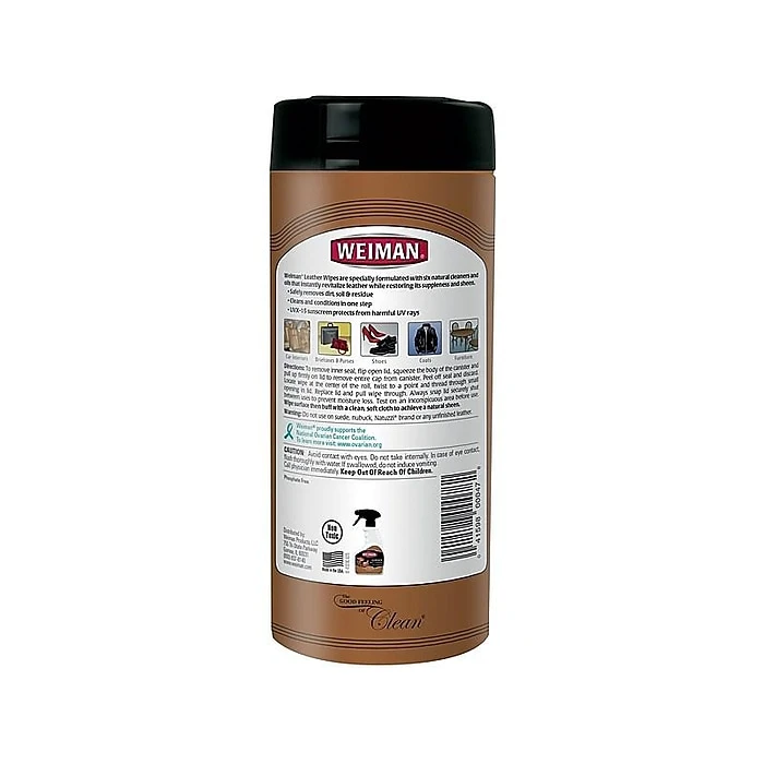 - Leather wipes with lemon scent to safely remove dirt, soil, cleans, and conditions in one step